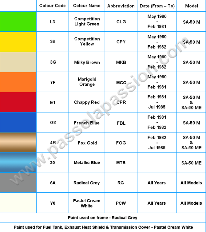 | SA-50 M - 1980 > 1982 | 13H - Engine / Frame Number: 2T4-260101 onwards |
