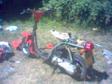 The next morning I received a phone call from another friend to say that after I left the night before, the bloke I had spoken to had gone up to the shop and chucked everything out on the road. The area isn't a very good one, and anything with two wheels is fair game for any theif. My friend at the time picked up what he could, but the bike had to stay stood in the road with a bit of old carpet draped over it. After the phone call I flew down to the shop, and to my amazement my bike was still standing in the road untouched (a total of twelve hours).